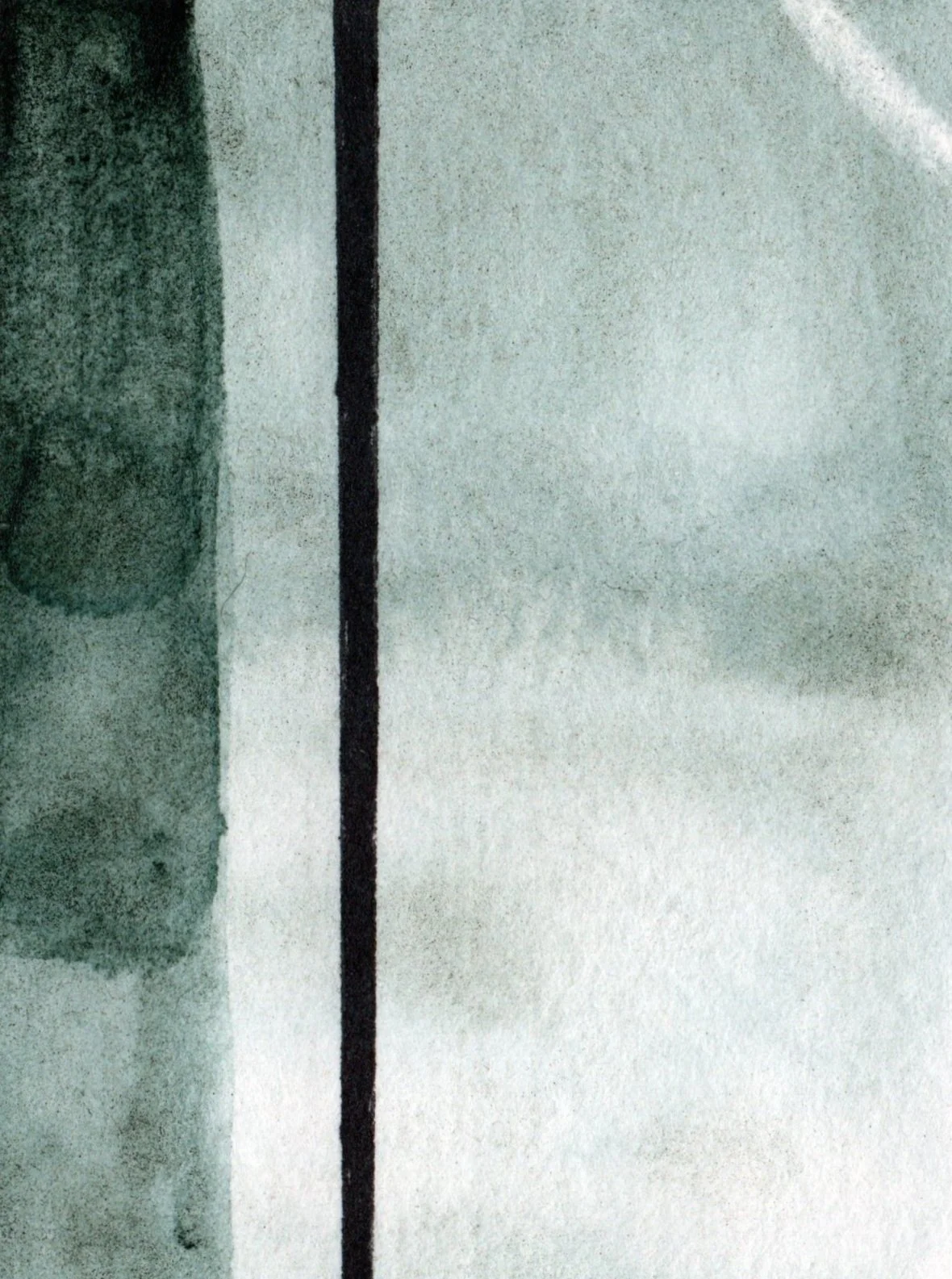 Green Indigo is a muted green with a gritty look. The paint does not feel gritty on paper but can have a slightly speckled look, with brown particles.
